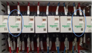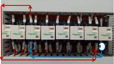 在正常状态下,真空泵与高真空气动挡板阀是分别独立控制的,如下图中间继电器接线情况实景所示:左起第二个中间继电器(K1)实现对真空泵的控制,左起第七个中间继电器(K7)实现对高真空气动挡板阀的控制,两者都接收到信号后相对应的中间继电器吸合实现对负载的控制。