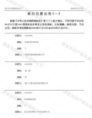 品牌兴企!日皮视频免费看软件日皮视频APP在线看黄机成功注册“PLASMAUSE”商标