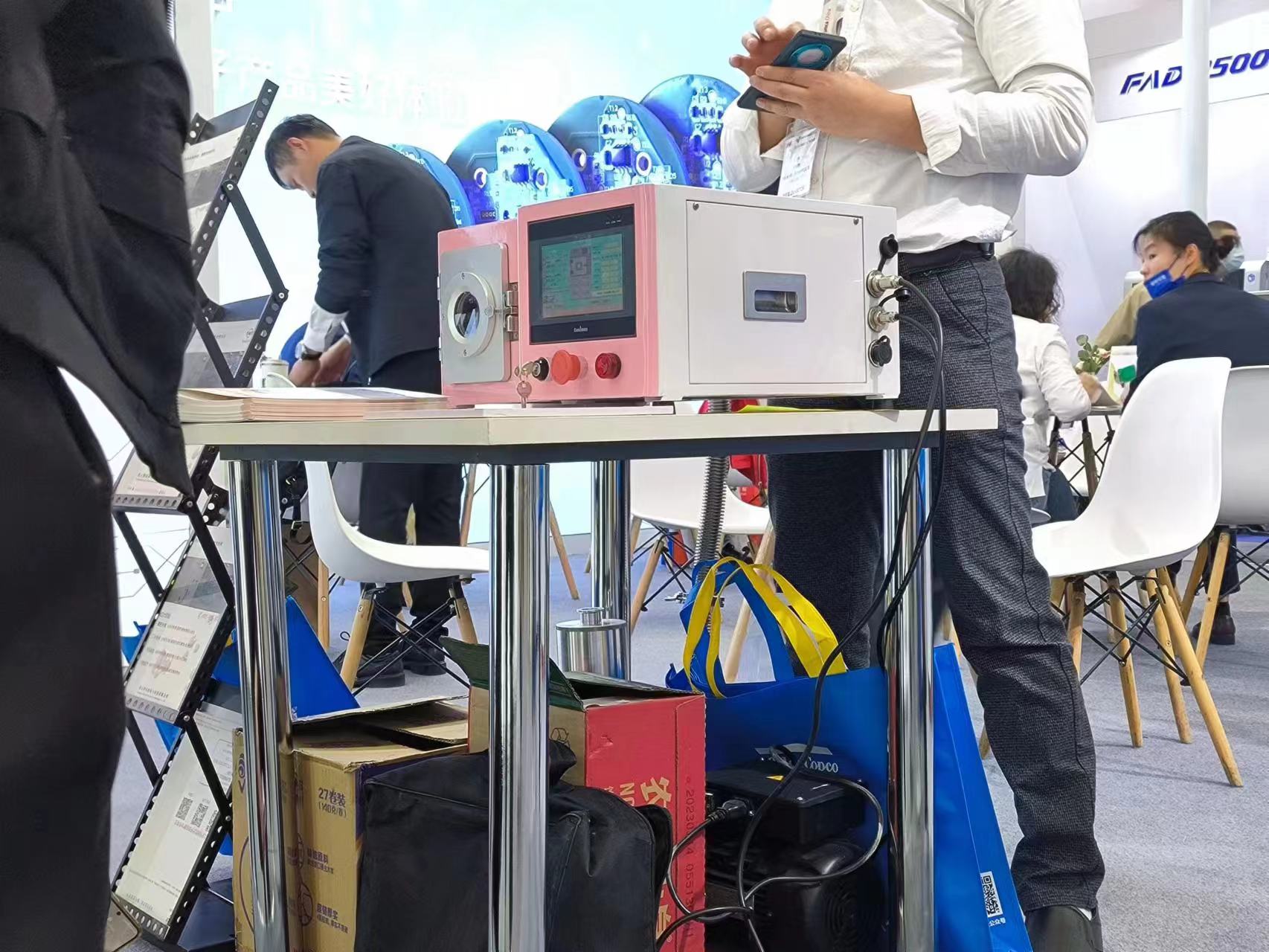 这是一台小型的真空等离子处理设备,粉色的外饰是它最大的亮点。之所以设计成这种较为抢眼的外表,也是日皮视频免费看软件为此次展会所特别设计的,日皮视频免费看软件希望在展会上参观人员能够关注到日皮视频免费看软件这种别出心裁的设计,以此更多地关注到神奇的等离子技术。